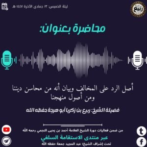 المحاضرات العلمية محاضرة أصل الرد على المخالف وبيان أنه من محاسن ديننا ومن أصول منهجنا قراءه المزيد ديسمبر 26, 2025 لا توجد تعليقات
